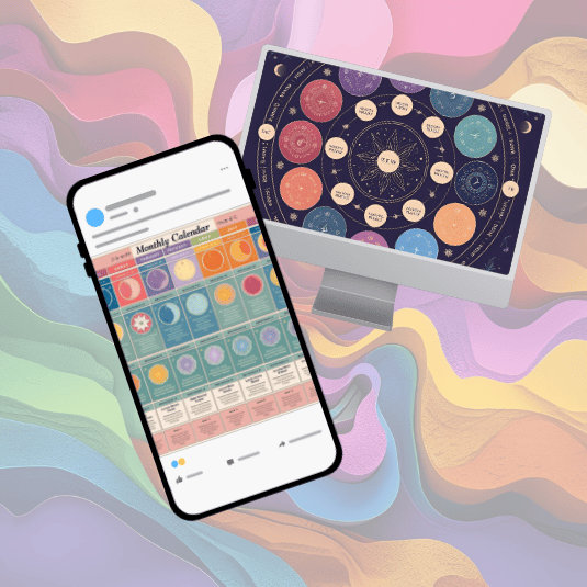 Um calendário mensal que indica as melhores fases da lua para práticas de autocuidado, limpeza emocional, rituais e visualizações amorosas.
